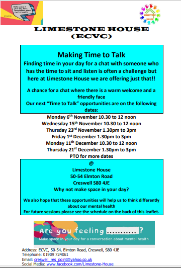 Finding time in your day for a chat with someone who has the time to sit and listen is often a challenge but here at Limestone House we are offering just that!!